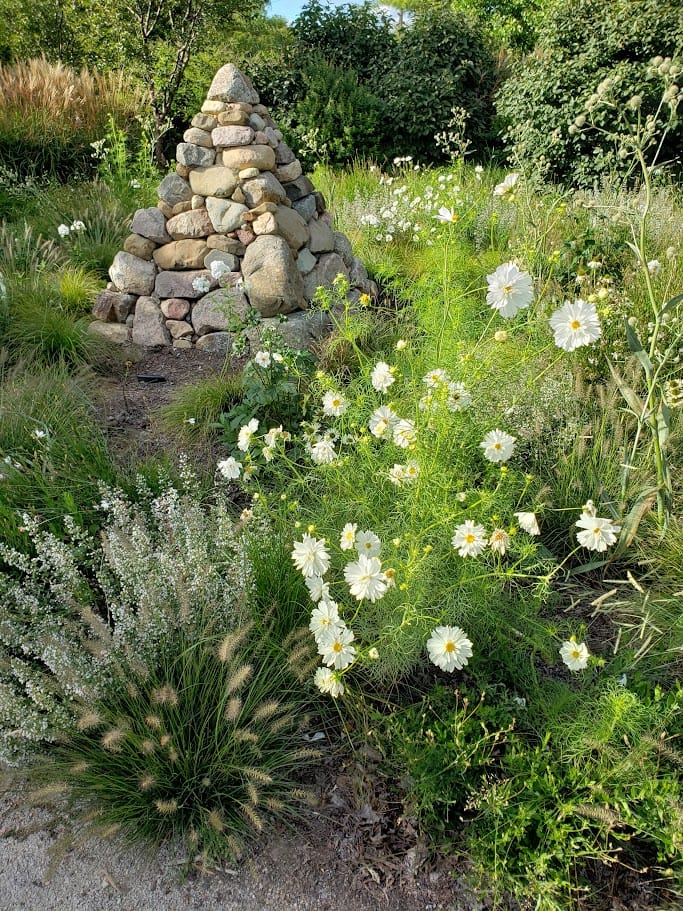 Cosmos soften the Moonlight Meadow at Olbrich Gardens.